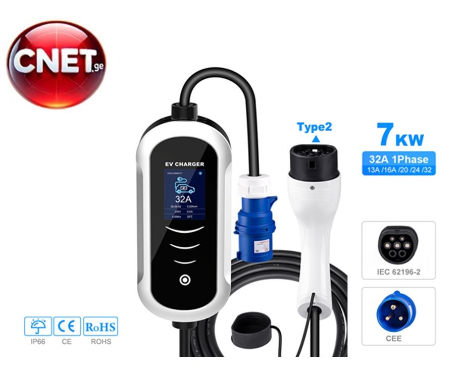 Gocean EV Charger 7KW/32A with Type-2 Port + Type-2 to Type-1 Adapter