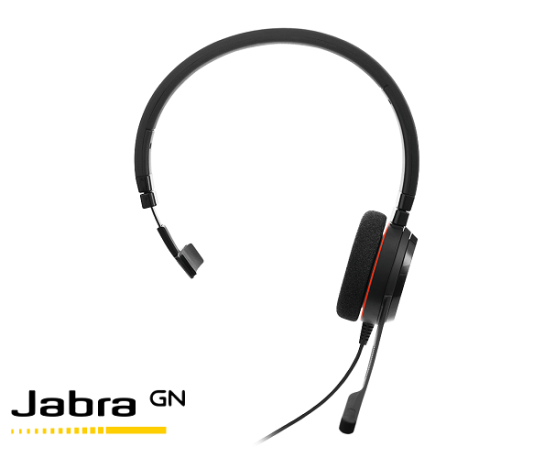 Jabra EVOLVE 20 MS Mono Headband; connects via USB; answer and sound control button on the headset cord; foam ear pads Certified for Microsoft Teams/Skype for Business Microphone Type: - Noise Reduction Connection: - computer